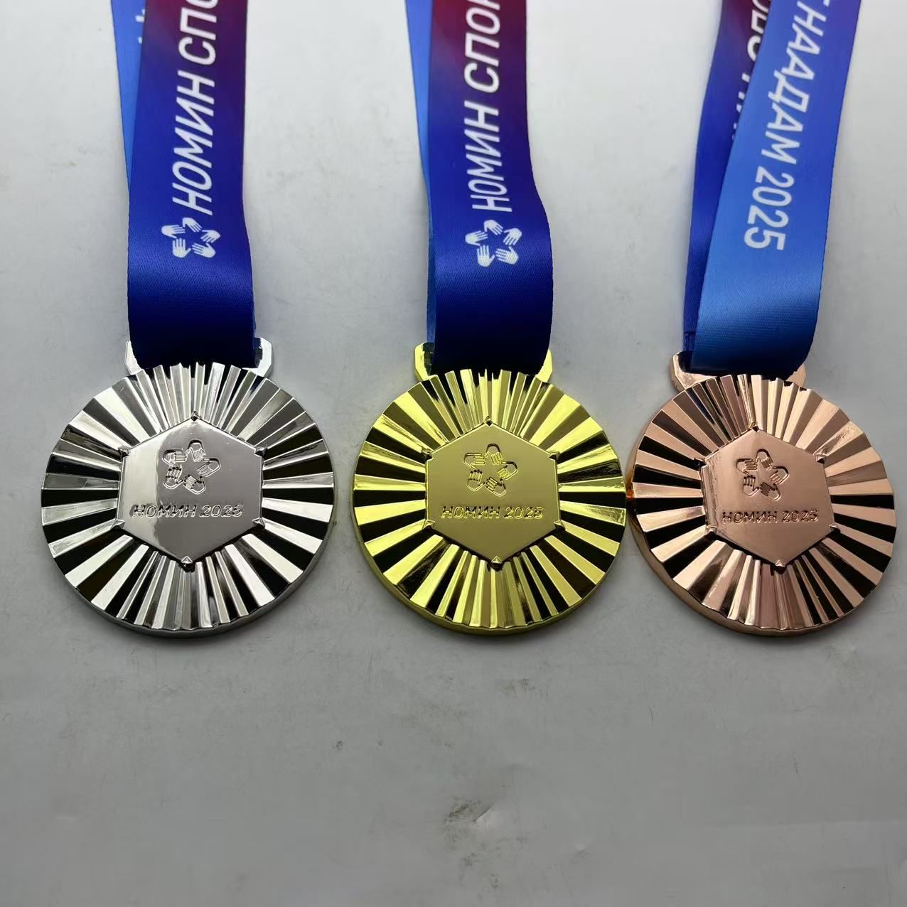 Төрөл бүрийн спортын арга хэмжээнд өөрийнхөө логотой медалийг гардуулан өгөх нь үнэ цэнэтэй дурсгал болон үлддэг.Бид олон улсын чанар нийцсэн медалийг ган хэв ашиглан үйлдвэрлэж байна.